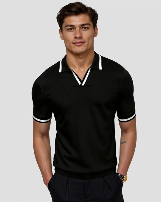 Aus héichwäertegem Piqué-Kottengestoff gemaach, steet dëse Polo fir déi perfekt Gläichgewiicht tëscht Eleganz a Komfort. De gerëppelte Krag an d'Manchette bréngen Struktur, während déi ofgegraenzte Paspelen eng markant Note bäifügen. Déi mëll Ofschloss an den ajustéierte Schnëtt maachen dëse Polo zum ideale Choix fir alldeeglech Eleganz – vum Moien bis an d'Nuecht.
